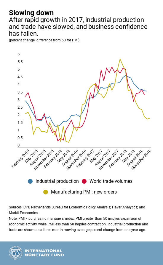 The global economy seems to be slowing down at a brisk pace. There are probably a number of factors behind this decline: the tariffs the US has imposed on important commodities and the reciprocal tariffs imposed by other states; the rise in the value of the US dollar brought about by increases in interest rates by the US Federal Reserve; and fears of credit excesses in China and several European states.