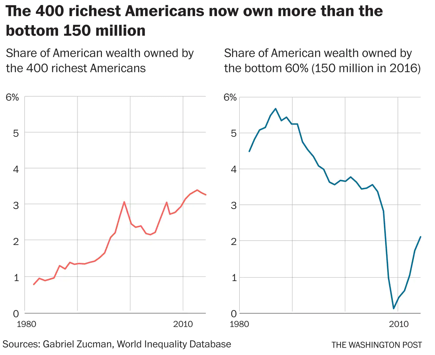 The Washington Post published the graph below which illustrates the trend in wealth inequality.