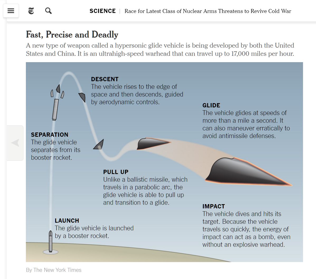 That Treaty expires on 5 February 2020 and there is no evidence that either side is interested in extending it. It also seems to be the case that both sides are quite interested in developing more missiles and weapons. The Russians are developing weapons specifically designed to evade the anti-missile systems being developed by the US. Those new Russian weapons are described by Matthew Gault: