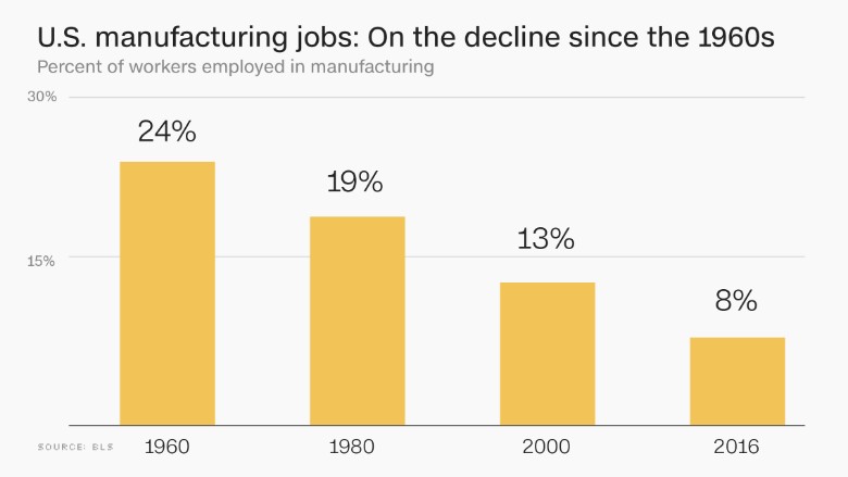 “Before examining the factors that have led to job losses, the authors discuss two periods that saw manufacturing employment fall sharply—1980 to 2000 and 2000 to 2017. Two million jobs were lost between 1980 and 2000 and 5.5 million jobs were lost between 2000 and 2017. The authors note that these losses have affected the employment rates of prime age workers, finding that a ’10 percentage point decline in the local manufacturing share reduced local employment rates by 3.7 percentage points for prime age men and 2.7 percentage points for prime age women.'”
