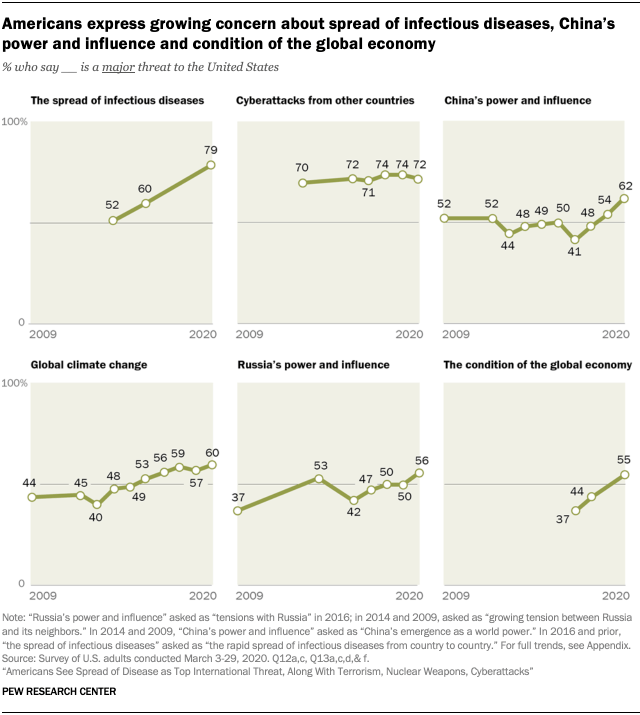 “Overwhelming majorities of Americans say cooperation with other countries is important when dealing with each of the international issues tested, and this is especially true of the spread of infectious diseases. On this issue, 86% say it is very important to cooperate with other countries, and 97% say it is at least somewhat important to cooperate.”