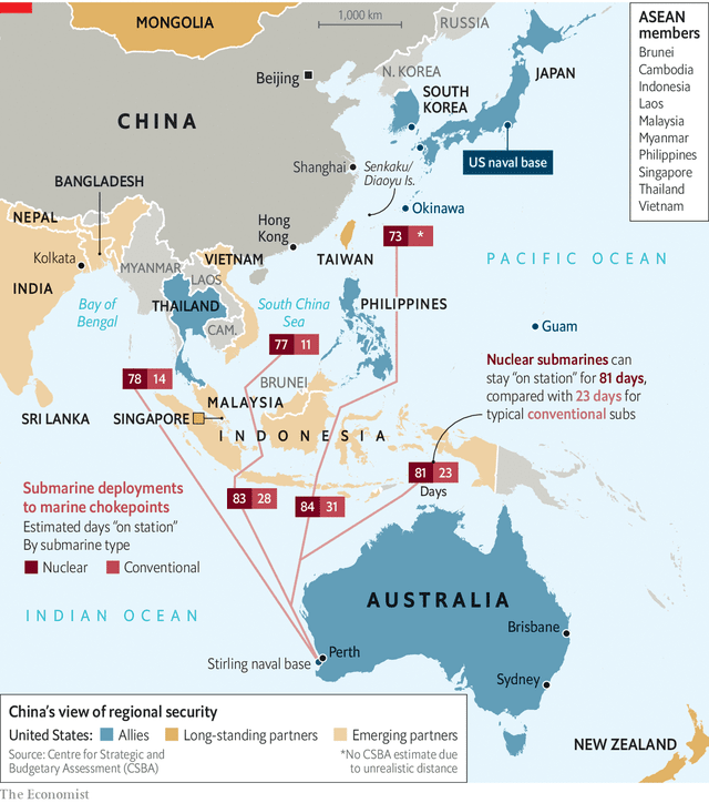 One cannot help, however, to note that in comparison to the US network of alliances in the region, the Chinese are pretty much isolated. Many of the countries in the region depend upon the Chinese economy, but most of the countries in the region are suspicious of Chinese intentions. They are quietly pleased that the US might act as a counterweight to Chinese power. All those states would prefer that the US presence be as low-key as possible and submarines certainly fill that bill.