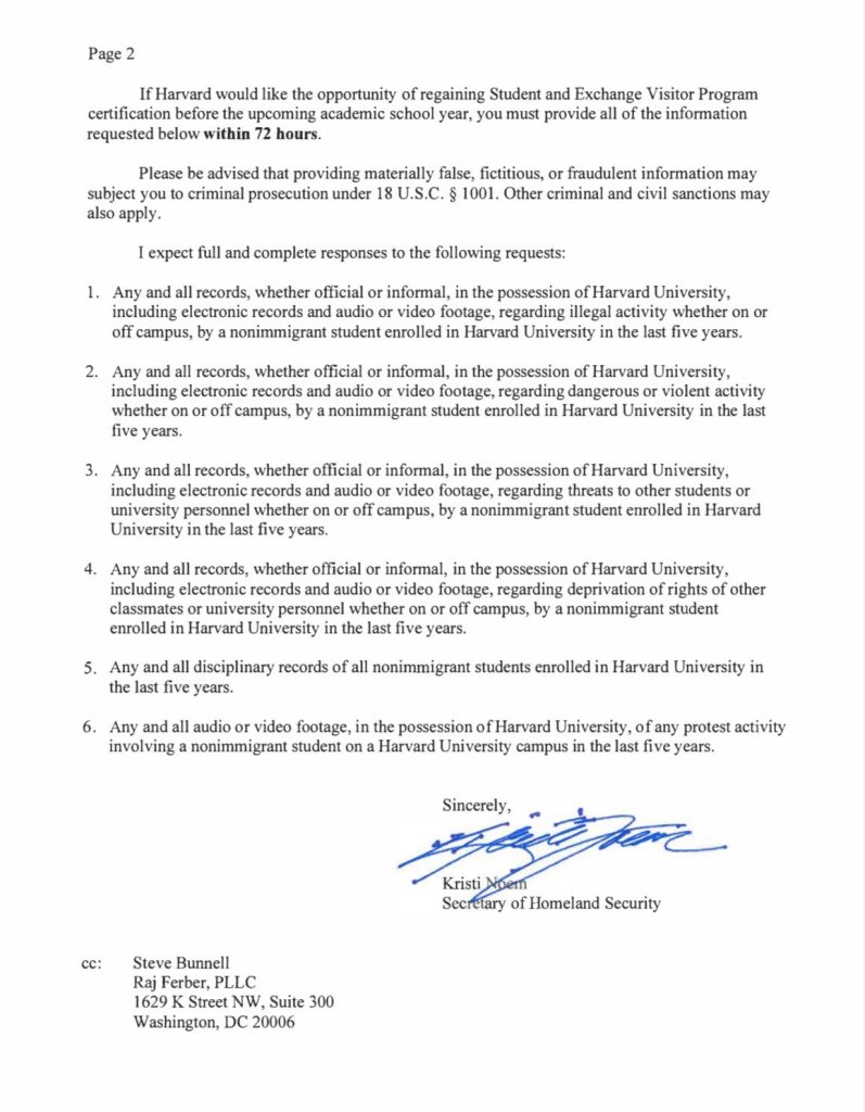 The full letter to Harvard can be read below: