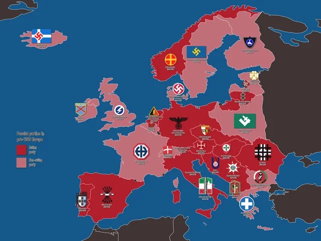 The Black Legion grew as Fascism became prevalent in Europe in the early 20th Century. It was a dynamic movement, starting with the first Fascist state in Italy in 1920 (although one could argue that Hungary was actually the first after the collapse of the Soviet Republic of Hungary founded by Béla Kun). By 1940, the only European states not ruled by a fascist party were Great Britain and Switzerland (one could argue that the Swiss worked closely with the Nazis). It was an amazing transformation in the space of only 20 years, counterbalanced by the emergence of the communist brand of totalitarianism in the Soviet Union.