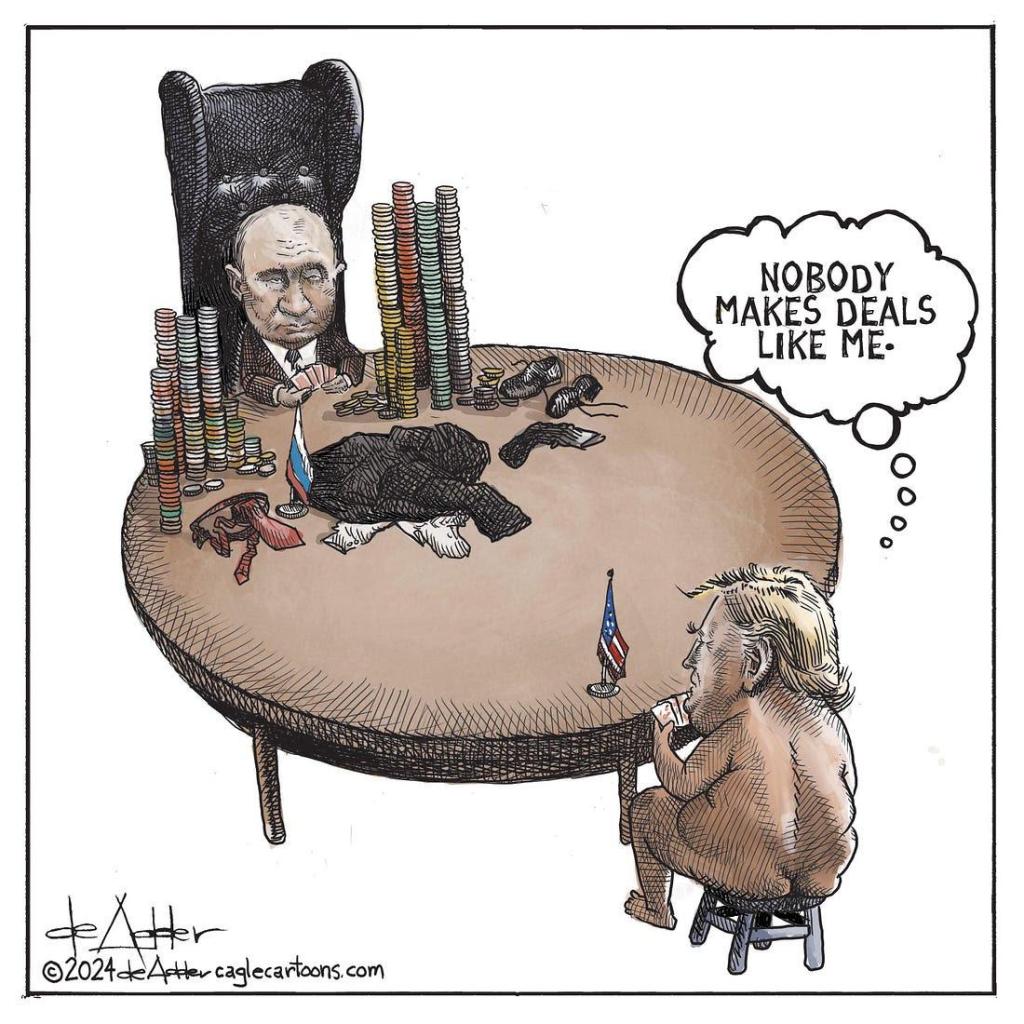 “Trump says Zelenskyy has no cards to play. In fact, Trump has taken cards away from Ukraine and handed them to Russia. Through amateurism or naivety, US officials gave away important leverage before talks even began. They ruled out Ukraine’s membership of Nato or the prospect of regaining any occupied territory. Trump’s neophyte special envoy Steve Witkoff has been seduced by the Kremlin’s flattery and swallowed its talking points about the causes of the war.”